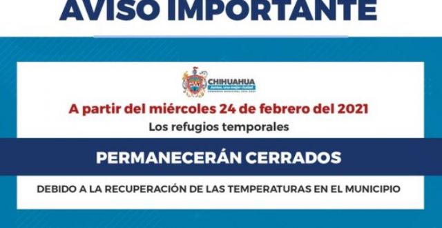 Los dos refugios temporales que habilitó el Gobierno Municipal para poder resguardar de las bajas temperaturas a aquellas personas vulnerables, cerrarán a partir del miércoles 24 de febrero, debido a la recuperación de las temperaturas en el municipio, ya que como su nombre lo indica operan de manera temporal.