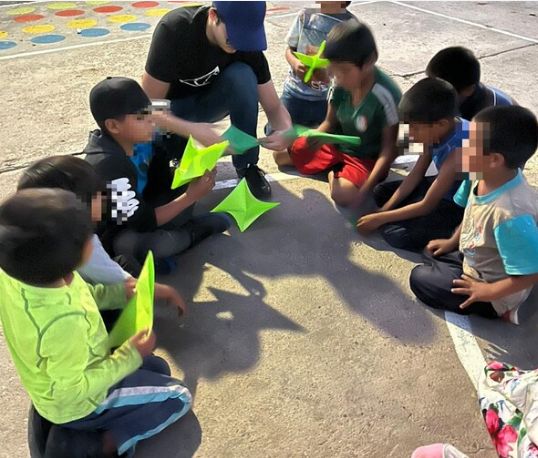 En las instalaciones de la Escuela primaria “Kali Rosákame”, ubicada al interior del asentamiento, niñas y niños tuvieron un taller de origami, una activación con