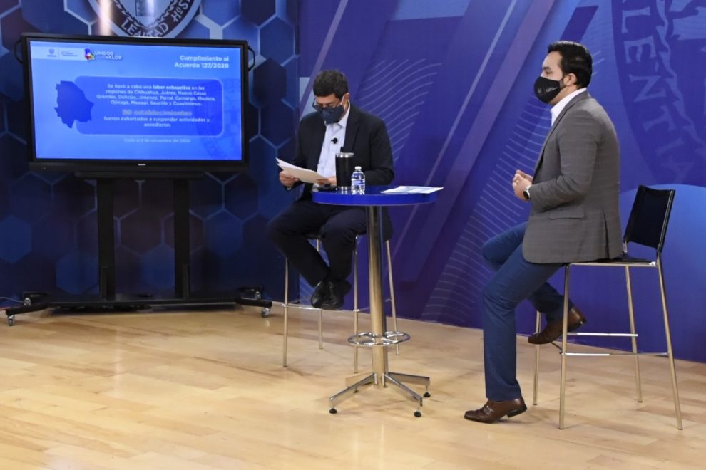 En el programa Chihuahua Adelante del gobernador Javier Corral Jurado, el jefe de la Dirección de Inspección del Trabajo, Marco Antonio Gaytán González, informó que mediante el trabajo de inspección y verificación, se detectaron 90 establecimientos en operación, los cuales fueron exhortados al cierre y accedieron sin mayor problema.