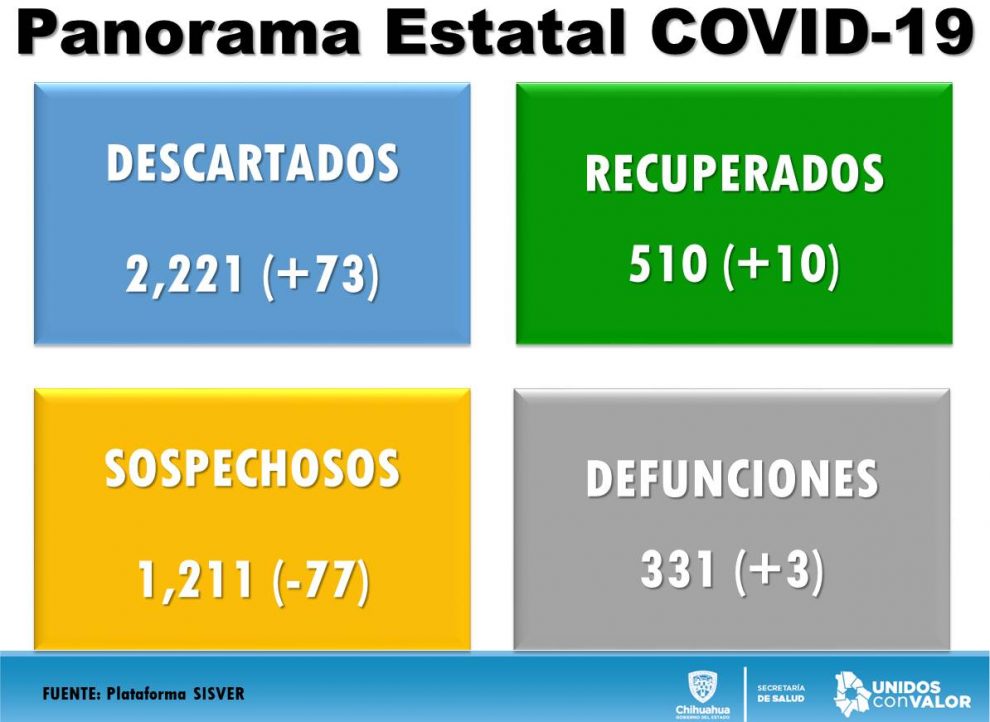 Hasta el momento son 331 las personas que han fallecido, en donde destaca también Juárez con 266 decesos, Chihuahua con 45 y en este caso, Meoqui es el tercer municipio con más casos, con cuatro.