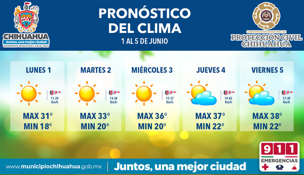 Joel Estrada Castillo dijo que conforme avanzan las semanas la temperatura ha ido en aumento y recomendó a los chihuahuenses tomar las debidas precauciones, evitar incendios de maleza y basuras, protegerse de los rayos directos del sol y tomar abundantes líquidos.