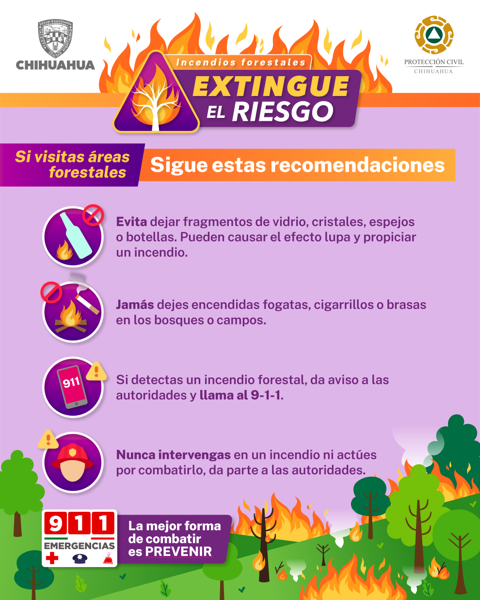 -Exhortan a implementar medidas preventivas, alejarse del área del siniestro y reportar de inmediato al 9-1-1 cualquier incendio