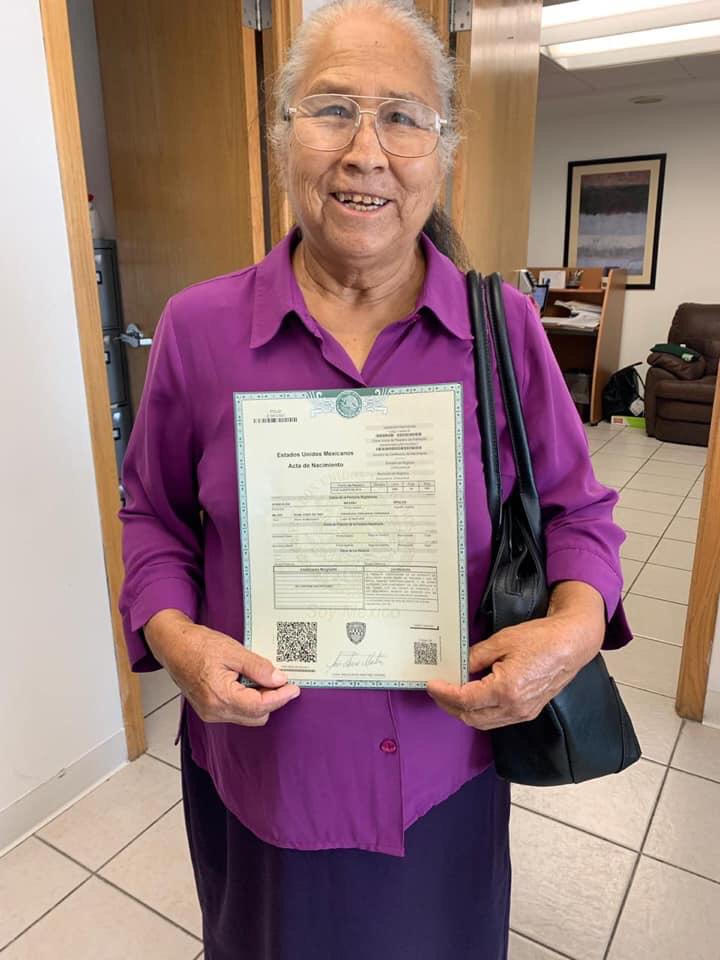 Apoyó Blanca Gámez a mujer de 70 años para que recibiera su primera acta de nacimiento
