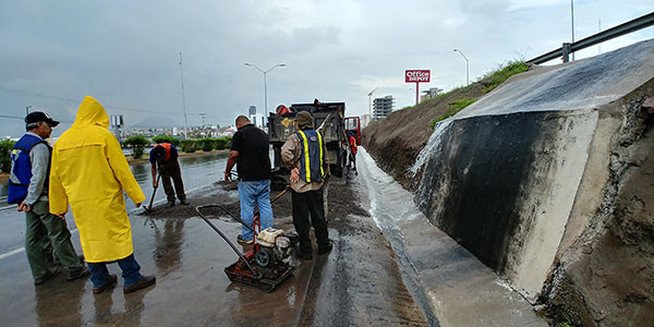 Para la reparación de la capa asfáltica, se levantará con máquina el asfalto dañado, se sanará la base con material de relleno y compactación firme para finalmente colocar una nueva capa de mortero asfáltico que permitirá que la subsecuente lluvia no siga provocando situaciones como la mencionada y así prevenir riesgos en esta vialidad de alto flujo y velocidad.