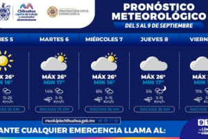 La Coordinación Municipal de Protección Civil, informa que, para la semana del 5 al 9 de septiembre, se prevén días frescos para la capital del estado con...