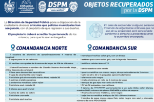 Con el objetivo de que los legítimos propietarios de artículos que han sido asegurados por policías municipales mediante los patrullajes ordinarios o...