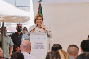 Al iniciar su gira de trabajo por Juárez, la gobernadora Maru Campos Galván encabezó la Feria de la paz y desarme voluntario, acompañada por secretario de...