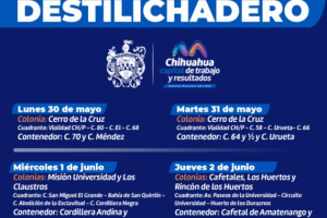 El Gobierno Municipal, a través de la Dirección de Servicios Públicos Municipales, informa a la ciudadanía el calendario que el programa Destilichadero...