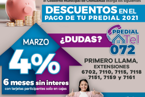 l Gobierno Municipal a través de la Tesorería te invita a aprovechar el descuento del 4 por ciento en el pago del impuesto predial, el cual está vigente todo...