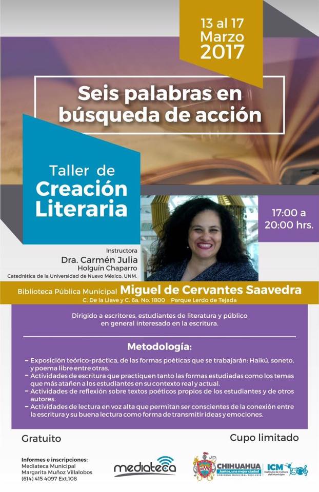 El Instituto de Cultura del Municipio, a través de la Coordinación de Fomento a la lectura, invita al taller de creación literaria “Seis palabras en búsqueda...