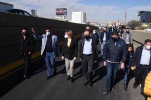 La presidenta municipal, Maru Campos Galván dio el banderazo inaugural a la gaza de desincorporación e intersección semaforizada en el Periférico de la...