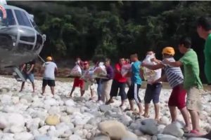 En el ejido Caridad Guerrero, de Tacotalpa, Tabasco, la Secretaría de la Marina destinó un helicóptero para llevar las despensas que envió a los pobladores el...
