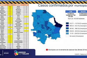 – En las últimas 24 horas se agregaron 327 contagios y 25 decesos, con lo que suman 20,470 el total acumulado y 1,659 las defunciones; hay 24 brotes...