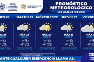 La Coordinación Municipal de Protección Civil, informa que, para la semana del 20 al 24 de febrero, se pronostican días cálidos, con mañanas y noches frías...