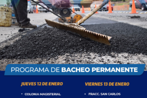 El Gobierno Municipal, por medio de la Dirección de Obras Públicas, exhorta a la población a tomar precauciones por los trabajos de bacheo que se realizarán...