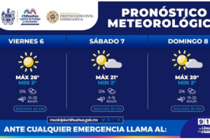La Coordinación Municipal de Protección Civil, informa que las temperaturas durante el fin de semana serán agradables por la tarde, con descensos de...