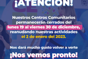 Con motivo de la temporada vacacional decembrina, el Gobierno Municipal, a través del DIF, informa a la ciudadanía que sus 43 Centros Comunitarios y los cinco...