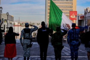 El alcalde de Chihuahua, Marco Bonilla Mendoza, encabezó el izamiento a la bandera en Plaza de Armas, evento que se realiza el primer lunes de cada mes por el...