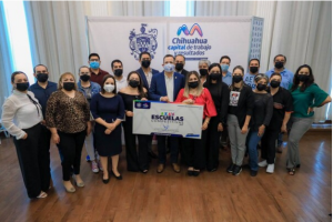El alcalde de Chihuahua, Marco Bonilla, hizo la entrega de apoyos económicos a escuelas de nivel básico y medio superior por medio del programa “Escuelas...