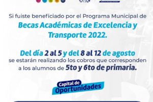 El Gobierno Municipal, a través de la Dirección de Desarrollo Humano y Educación, entregará el importe de las Becas Académicas de Excelencia y Transporte a los...