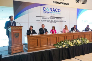 El alcalde, Marco Bonilla, asistió a la toma de protesta del nuevo consejo directivo para la Cámara Nacional del Comercio (CANACO) SERVYTUR Chihuahua para el...