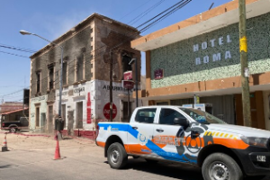 Chihuahua, Chih. A 18 de abril de 2023.- La Coordinación Municipal de Protección Civil lleva a cabo la supervisión a la demolición del inmueble ubicado en la...