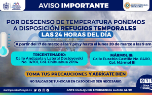 Chihuahua, Chih. A 17 de marzo de 2023.- El Gobierno Municipal de Chihuahua, a través de la Coordinación de Protección Civil, informa que ante el descenso de...