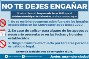 Debido a que se han detectado algunos casos en los que personal externo al Gobierno Municipal de Chihuahua se ofrece para tramitar o hacer llegar los trámites...