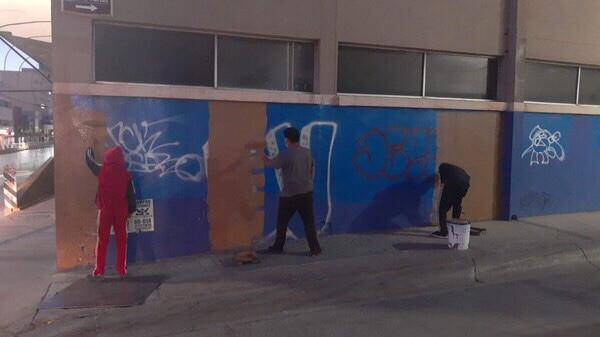 Tres jóvenes aficionados al grafiti, identificados por policías municipales como probables responsables de realizar leyendas en algunos inmuebles del centro de la ciudad, resarcieron los daños pintando cerca de 230 metros cuadrados de muros, una vez que los agentes los concientizaron sobre el daño en propiedad ajena y la forma en que pueden buscar espacios para plasmar legalmente sus grafitis con mensajes positivos.