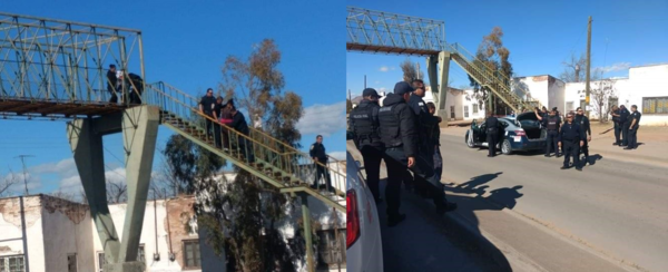 Después de dialogar con ella, uno de los elementos policiacos la sujetó por sorpresa evitando que se lanzara y poniéndola a salvo para p