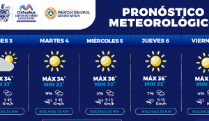 Chihuahua, Chih. A 03 de julio de 2023.- La Coordinación Municipal de Protección Civil, informa a la población que, para la semana del 3 al 7 de julio, se...