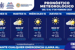 La Coordinación Municipal de Protección Civil, informa que las temperaturas durante la semana se mantendrán a la baja, con una mínima de -3°C para el miércoles...
