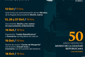 En conmemoración del 50 aniversario del Museo de la Lealtad Republicana Casa de Juárez que se celebra el 12 de octubre, la Secretaría de Cultura invita a las y...