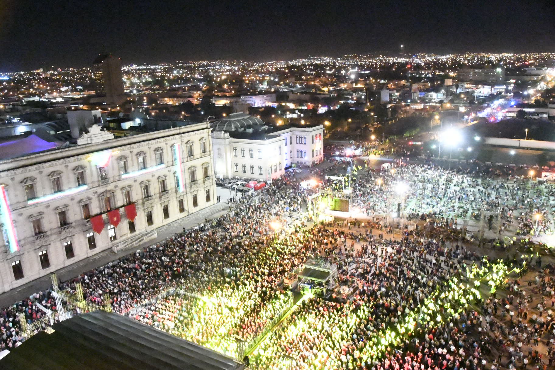 Muera la corrupción y la impunidad! arenga Javier Corral desde el balcón principal de Palacio de Gobierno ¡Muera la corrupción y la impunidad!, ¡Viva la...