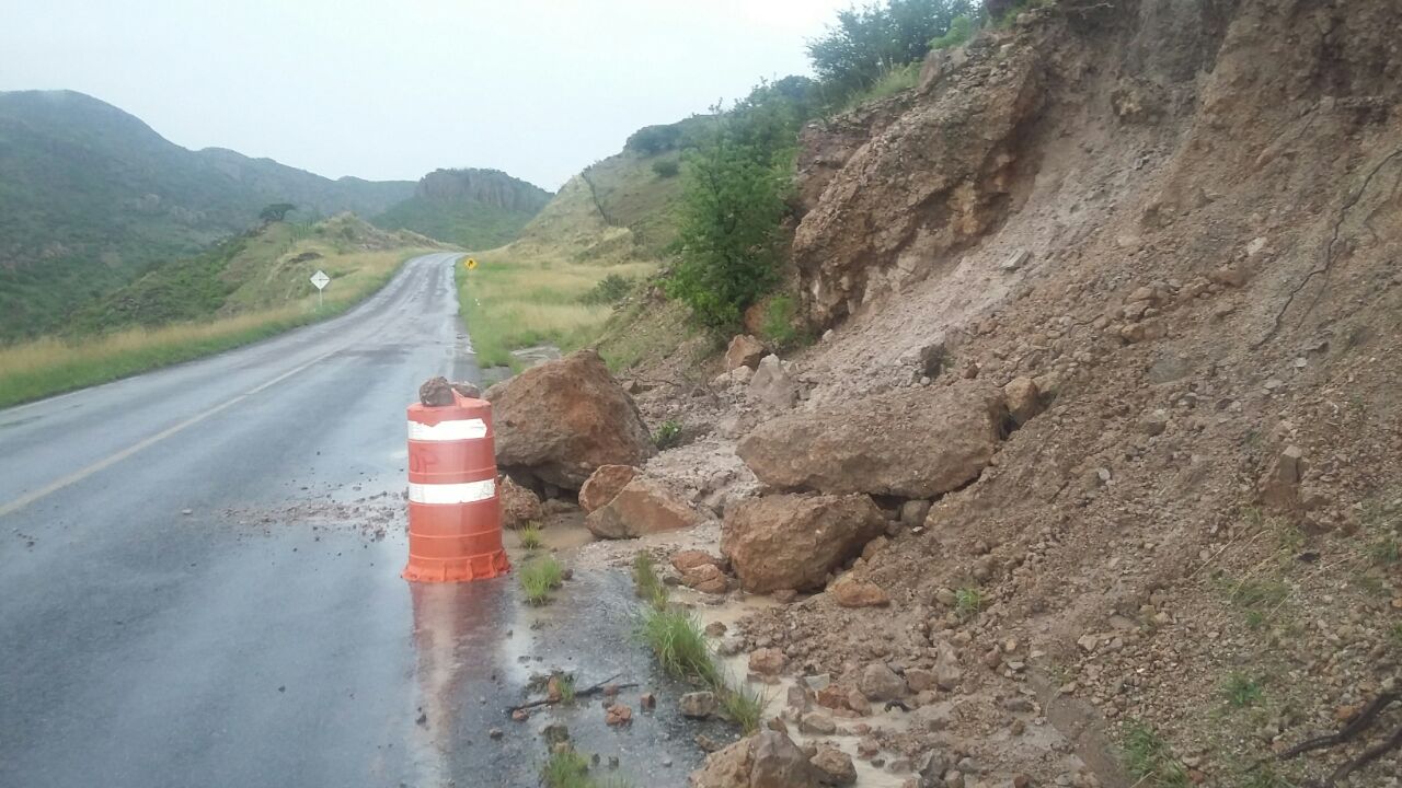 Cuadrillas de trabajadores de la Secretaría de Comunicaciones y Obras Públicas (SCOP) reparan baches en el tramo estatal El Mirador-San Francisco de Borja, a...