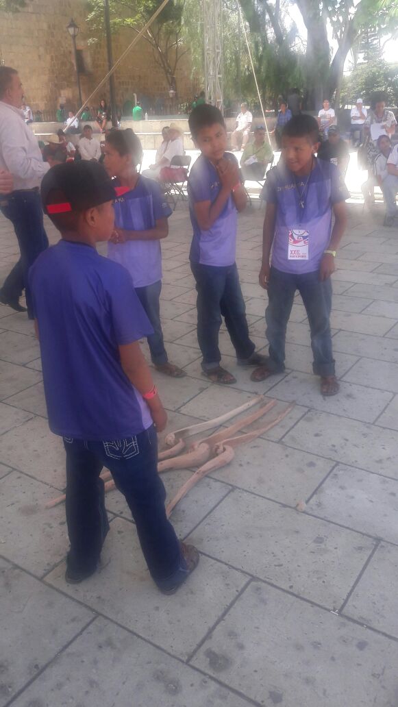 Un grupo de niñas y niños rarámuris del sistema de Educación Indígena del estado, participan en Oaxaca en el XX Encuentro Nacional de Juegos y Deportes...
