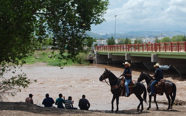 *Agentes de la Policía Montada recorren la ribera del Sacramento para desalojar visitantes Los elementos del H. Cuerpo de Bomberos y de la Policía Municipal...