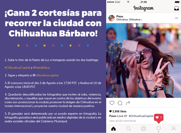 – ¡Gana dos cortesías para un recorrido con Chihuahua Bárbaro! El Gobierno Municipal te invita a que participes en el concurso de fotografía de la Fiesta...