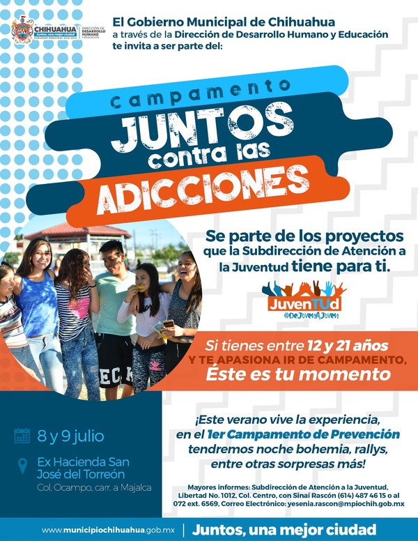 El Gobierno Municipal a través de Dirección de Desarrollo Humano y Educación y la Subdirección de Atención a la Juventud, invitan al campamento “Juntos contra...