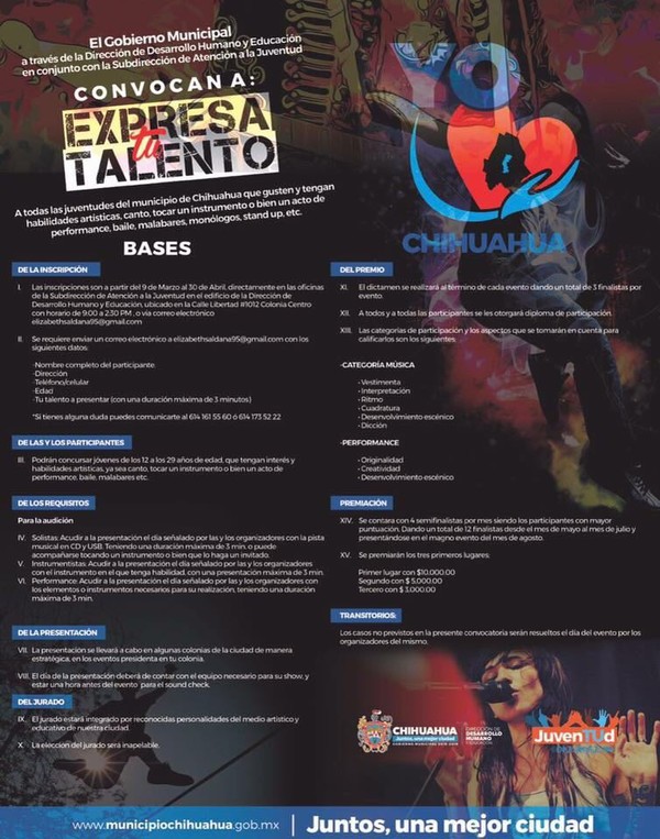 La Dirección de Desarrollo Humano y Educación recuerda a los jóvenes que quedan pocos días para inscribirse en la convocatoria ‘’ Expresa tu talento’’ para...