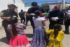 Policías de los diferentes grupos especiales con los que cuenta la corporación municipal entregaron kits de sanitización al asentamiento tarahumara “El Oasis”...