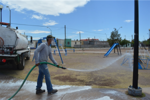 Como parte del refuerzo de actividades de limpieza en la ciudad, ante la contingencia sanitaria por el Covid-19, el Gobierno Municipal de Chihuahua llevó el...