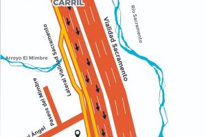 Como parte de los trabajos del colector de aguas residuales de El Mimbre, el carril izquierdo de la vialidad Sacramento a la altura del arroyo El Mimbre en...