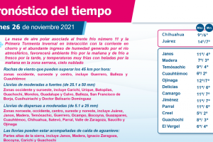 Mantiene Protección Civil aviso preventivo ante la presencia del sistema frontal número 11 y la Primera Tormenta Invernal; exhorta a la población a tomar...