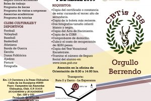 El CBTis No. 158, invita a todos los alumnos que cursen el Tercer grado de Secundaria, a nivel general, a realizar su trámite para el nuevo ingreso. A partir...