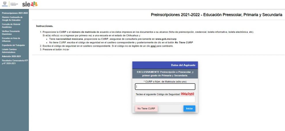 Por lo cual, se hace extensiva la invitación a madres y padres de familia, tutoras(es) que no han efectuado el trámite respectivo, a realizar el registro a través de la página del Sistema de Información Educativa, https://sie.chihuahua.gob.mx/publico/preinscripciones.