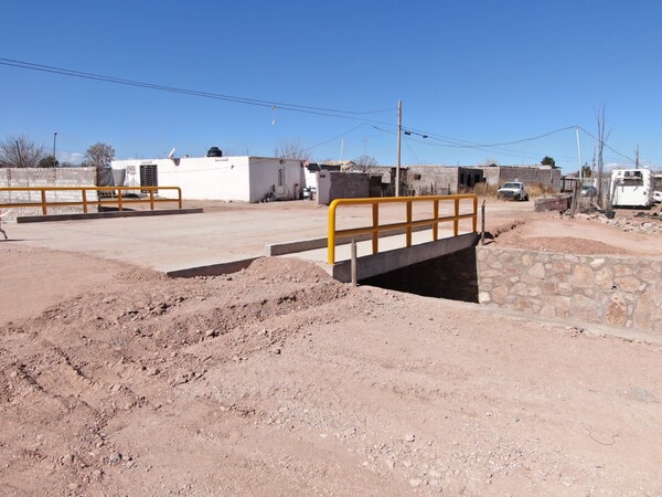 El Gobierno Municipal de Chihuahua, a través de la Dirección de Obras Púbicas, concluyo con los trabajos de Construcción de Puente Vehicular que conecta a las calles Haciendas de Cieneguilla y Hacienda de Canadá, comprendiendo también la ampliación de la canalización del arroyo Los Arcos I, mejorando y brindando mayor seguridad a los habitantes de la colonia Ampliación Nuevo Triunfo, al norte de la ciudad.