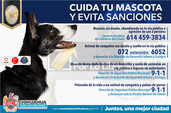Con la intención de que los propietarios de mascotas estén enterados acerca de los cuidados que deben de tener al sacar a pasear sus animales domésticos, la Dirección de Seguridad Pública Municipal, exhorta a tomar en