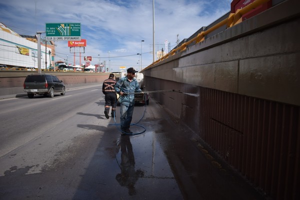 También, se comenzó a pintar las paredes del paso a desnivel conocido como Tricentenario, mismo que conecta tanto con la carretera a Cuauhtémoc, como con la avenida Silvestre Terrazas y el periférico de la Juventud.