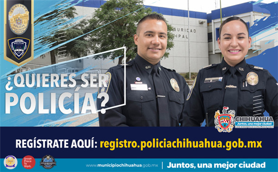 Si tienes vocación de servicio y quieres pertenecer a una de las mejores corporaciones del país, el Municipio de Chihuahua, a través de la Dirección de Seguridad Pública Municipal te invita a registrar tus datos de manera virtual para ser considerado en el proceso de reclutamiento que se estará llevando a cabo por etapas en la Escuela de Policía.
